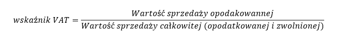 Poniżej znajdziesz wzór, jak ustalić ostateczny współczynnik proporcji VAT: